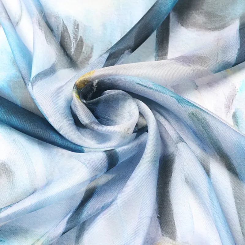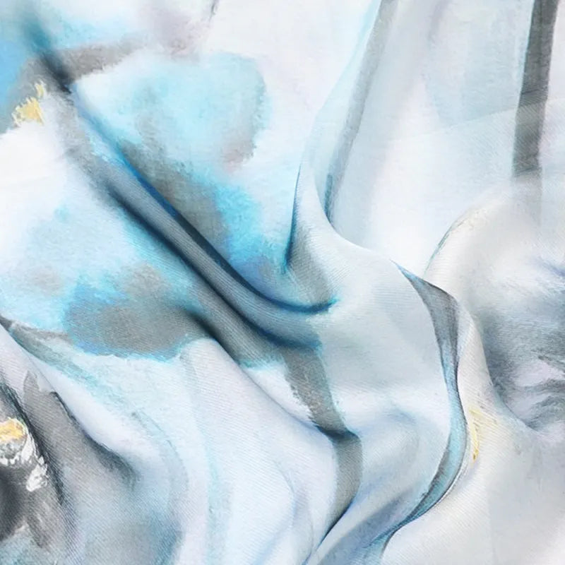 100% Mulberry Silk Long Scarf Shawl with Colorful Ink Design 190 × 110 cm