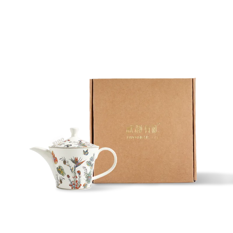 800ml Chinoiserie Bone China Pear-Shaped Coffee Pot – Butterfly & Floral Motif