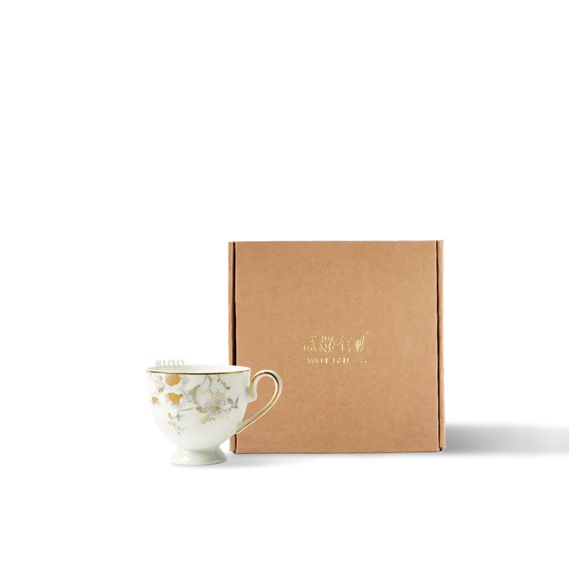 Chinoiserie Luxury Bone China Pedestal Coffee Cup – Peony & Butterfly Design