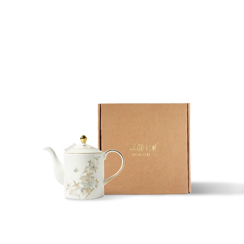 Chinoiserie Luxury Straight-Sided Bone China Coffee Pot – Peony & Butterfly Design