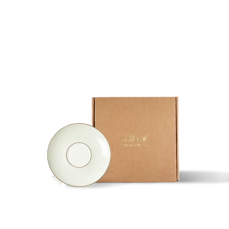 Chinoiserie Luxury Bone China Demitasse Saucer – Classic White with Gold Rim