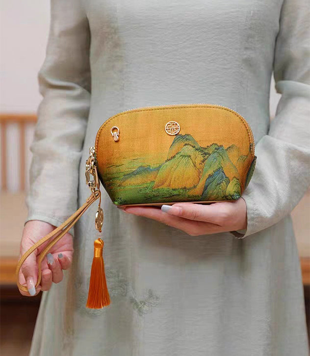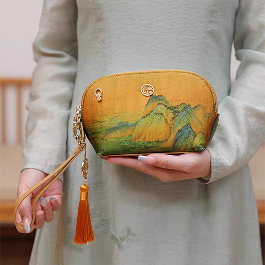 Pochette portefeuille de luxe en soie de mûrier, peinture ancienne chinoise