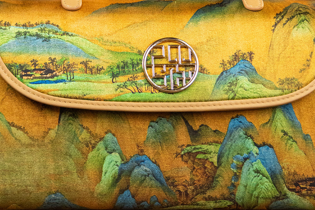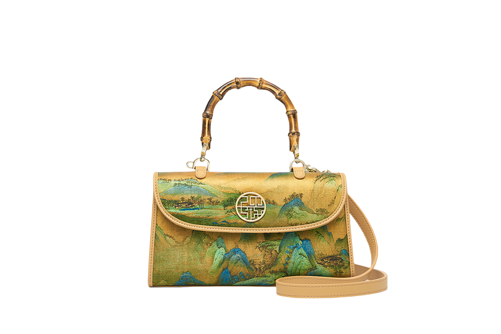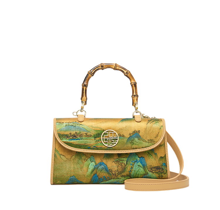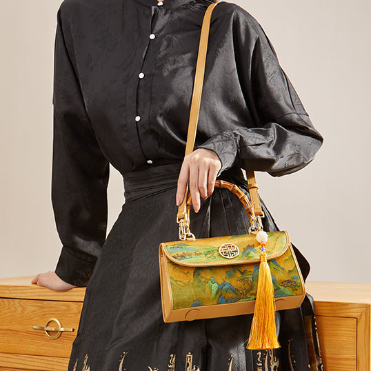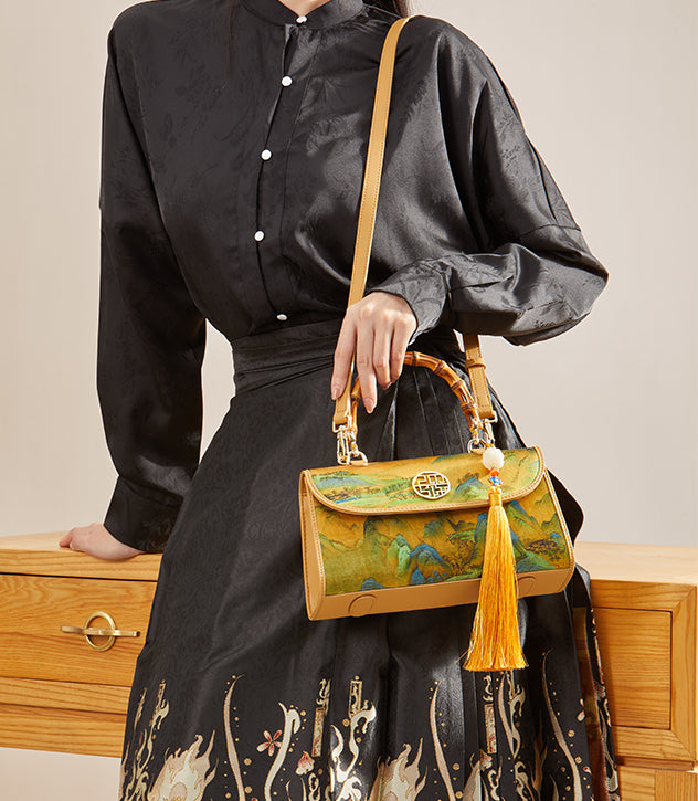 Sac à main tonneau en soie et bambou Xiangyunsha, peinture chinoise