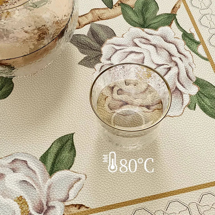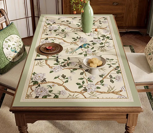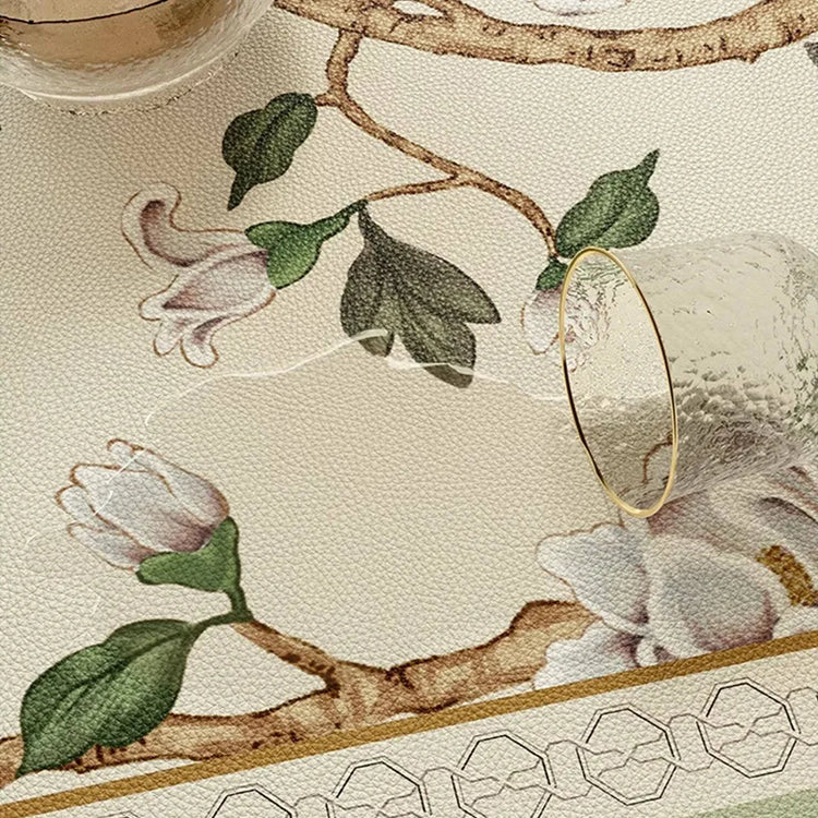 Chinoiserie Jade Green Rectangular Leather Table Mat – Waterproof & Easy to Clean