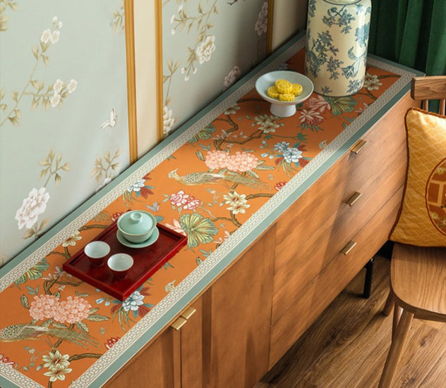 Dessous de plat TV en cuir motif hortensia des montagnes Chinoiserie
