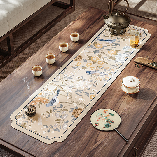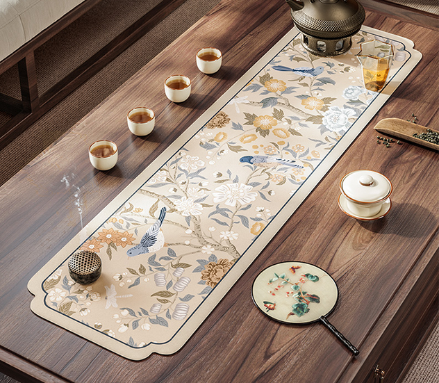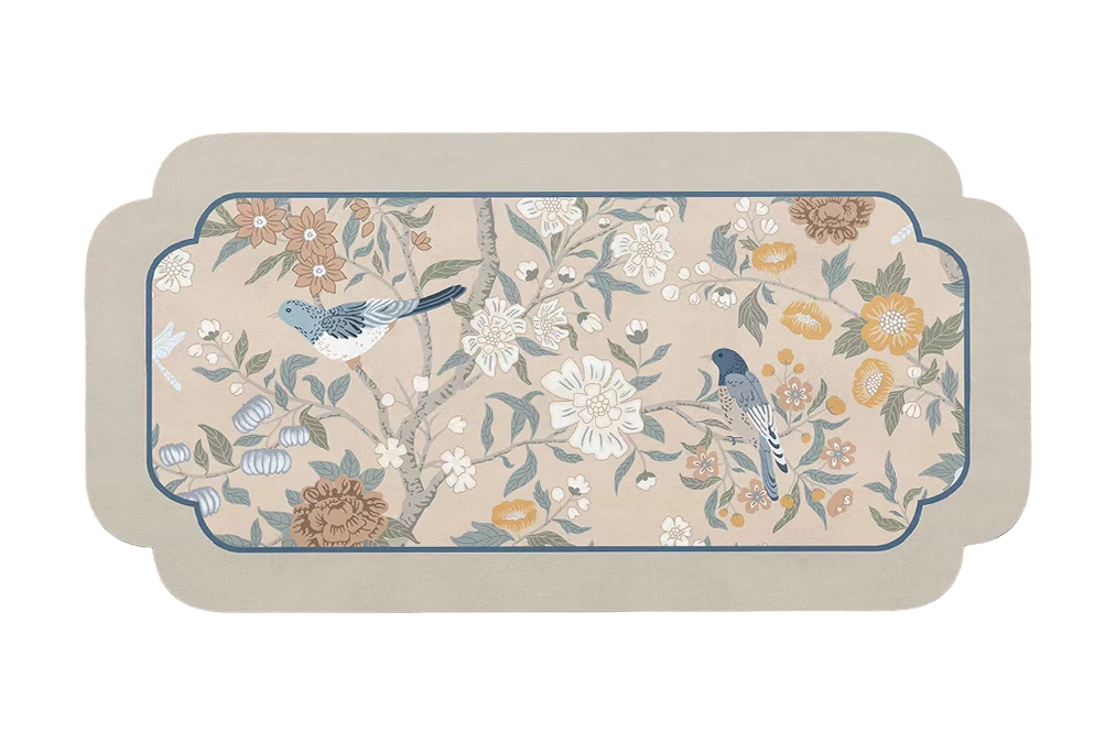 Set de table en cuir vintage motif fleurs de printemps chinoiserie