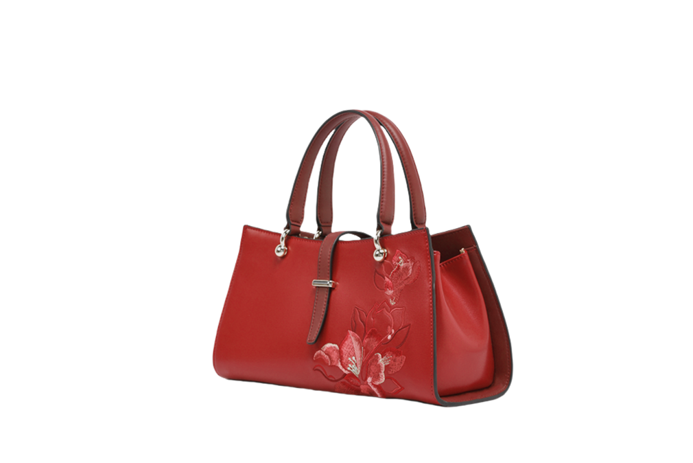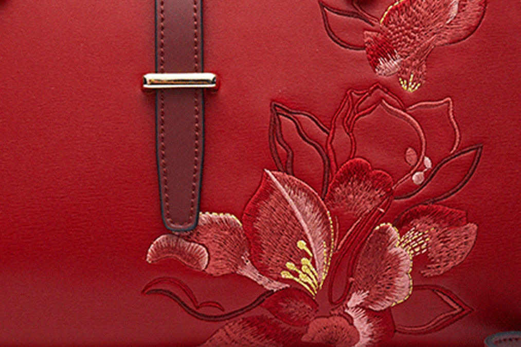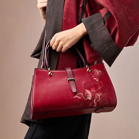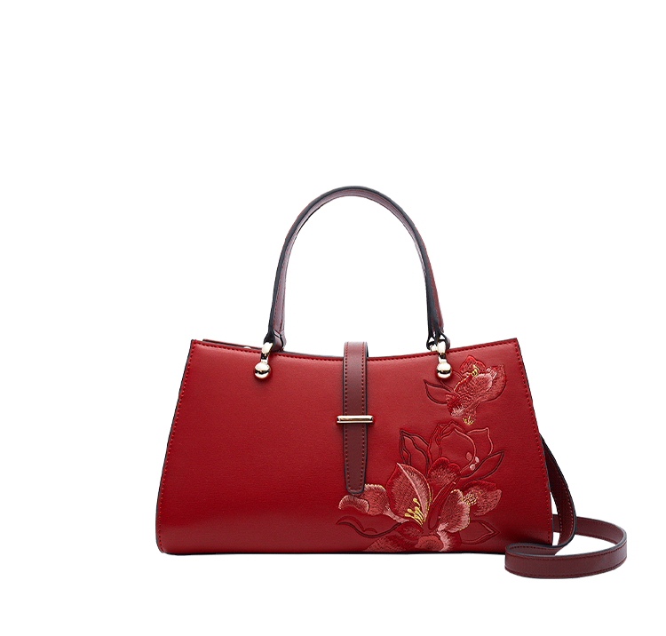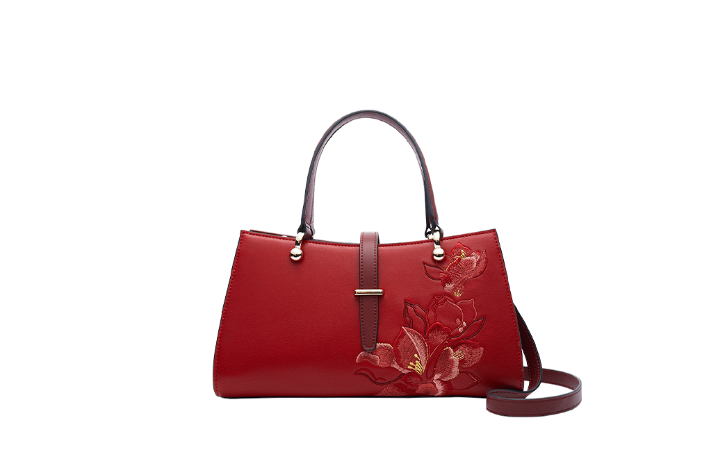 Sac à main bandoulière femme en cuir brodé rouge magnolia