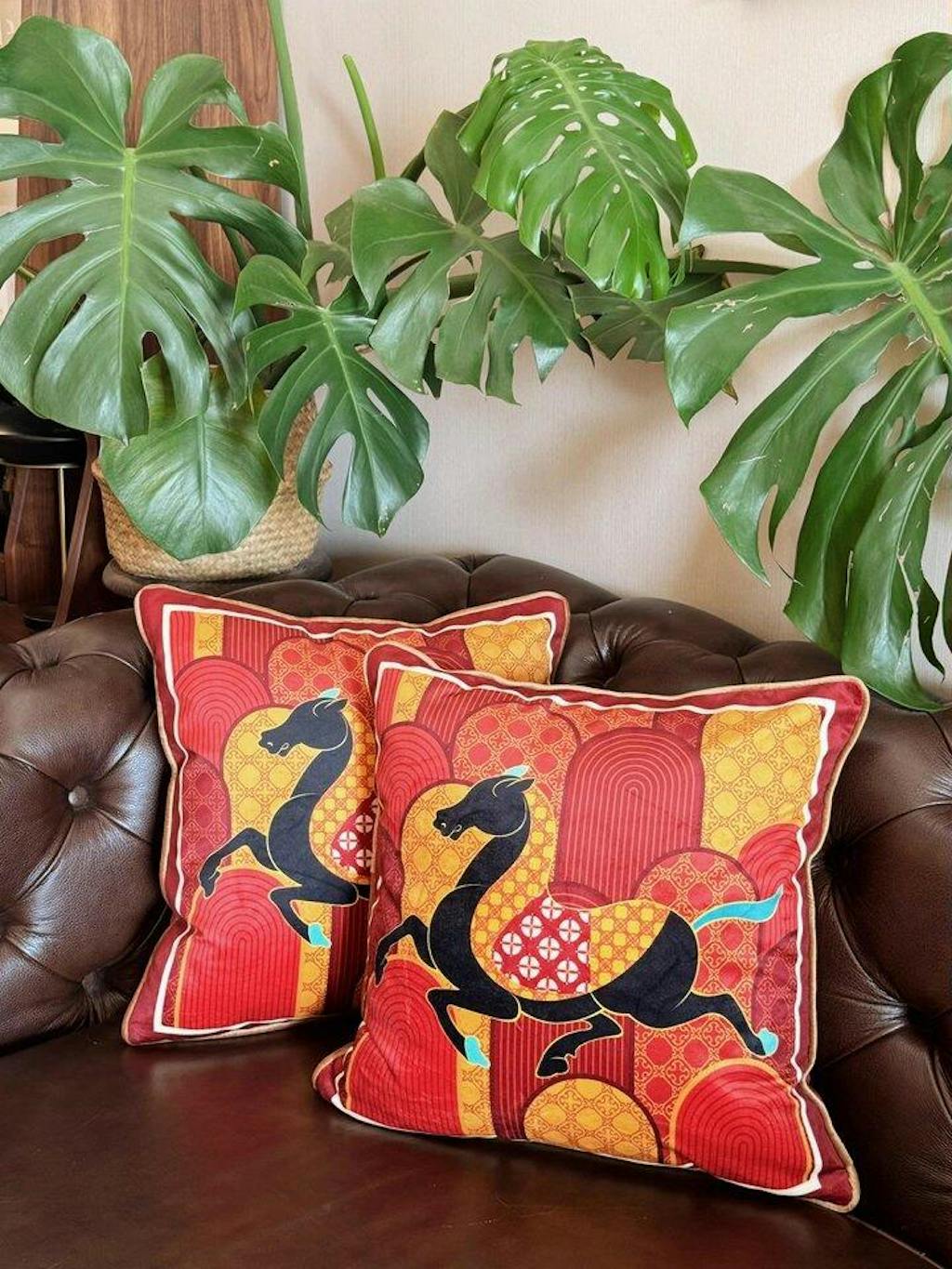 Luxury Chinoiserie Fortune Horse Throw Pillow for Living Room