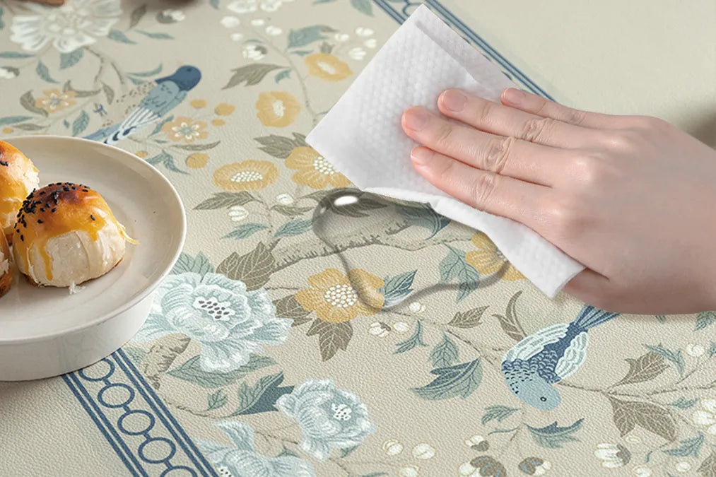 Chinoiserie Elegant High-end Floral Rectangular Leather Table Placemat