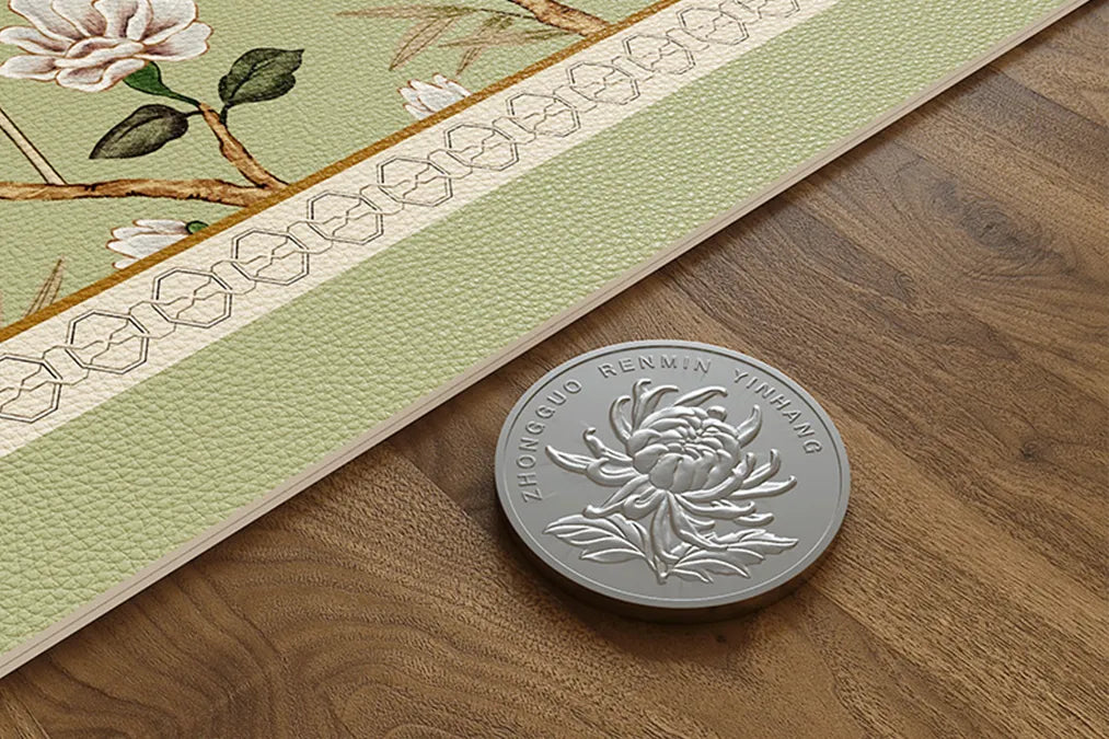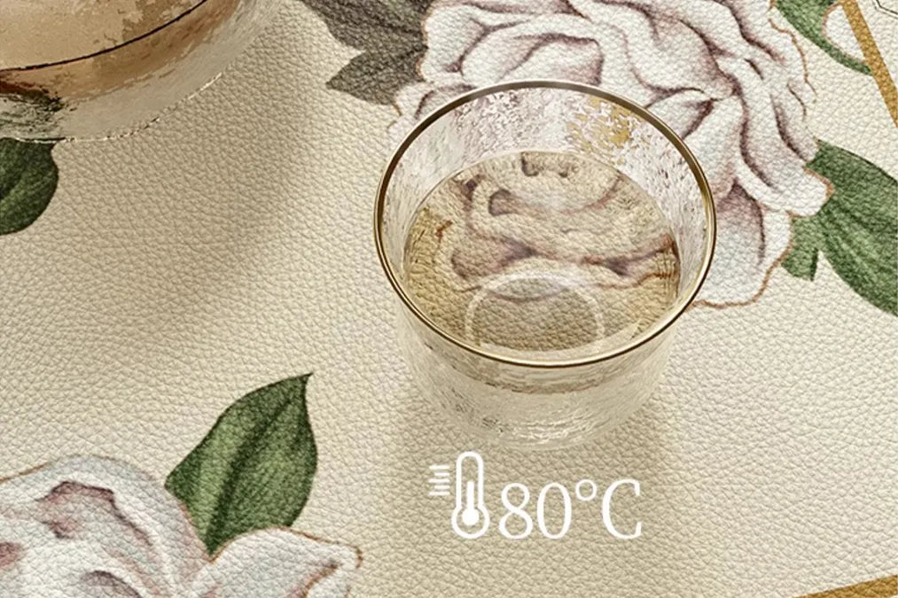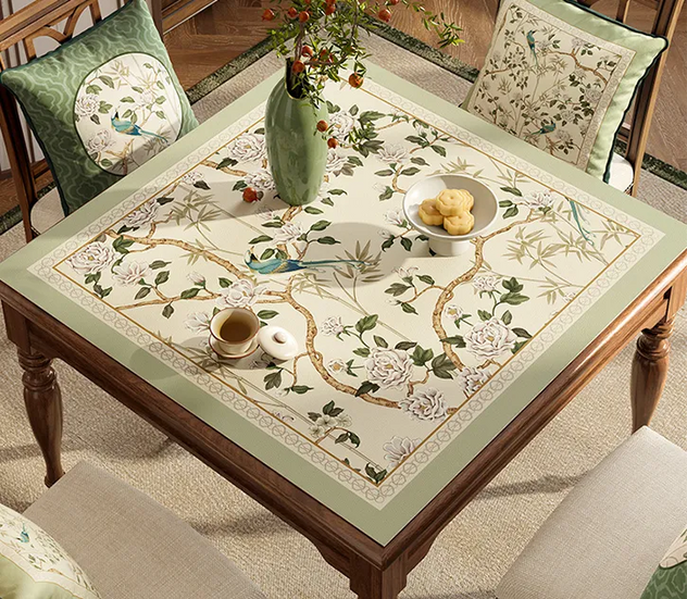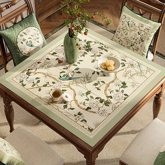 Chinoiserie Green Leather Square Table Mat Waterproof Easy Clean