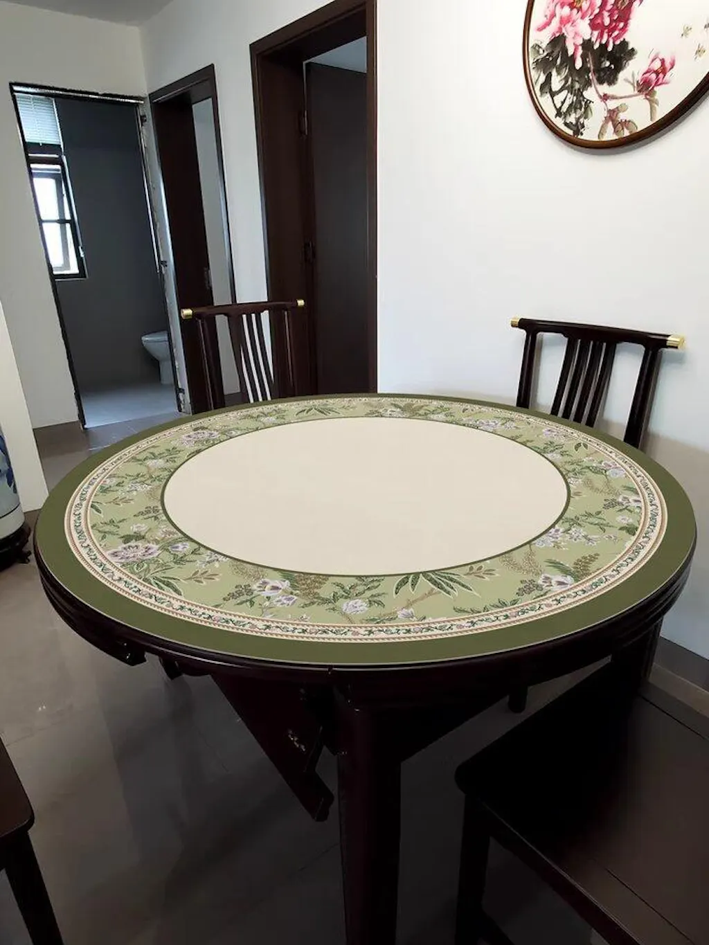 Chinoiserie Luxury Emerald Green Floral Round Table Mat