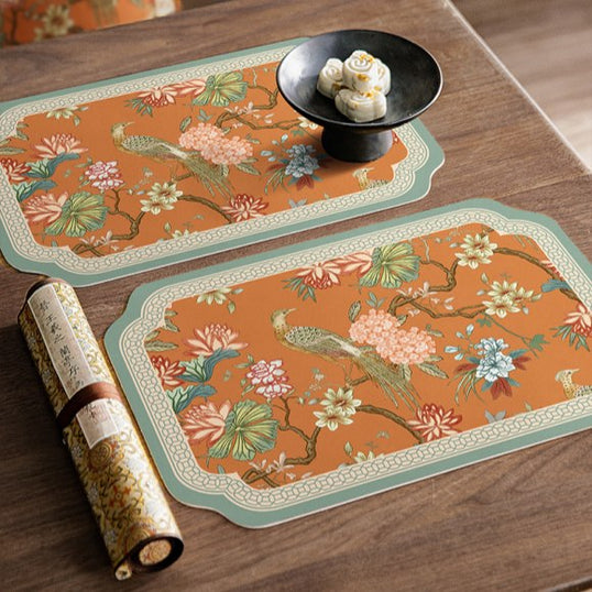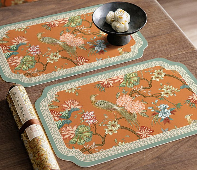 2-Piece Chinoiserie Mountain Hydrangea Leather Washable Placemat