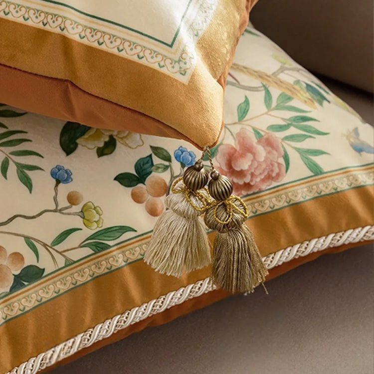 Chinoiserie Original Flowers and Birds Yellow Throw Pillow