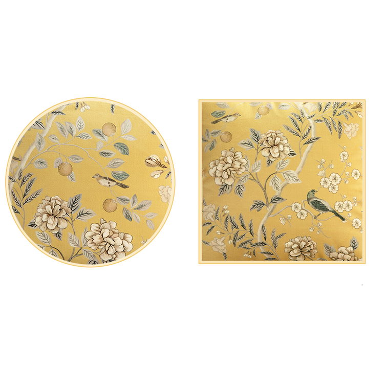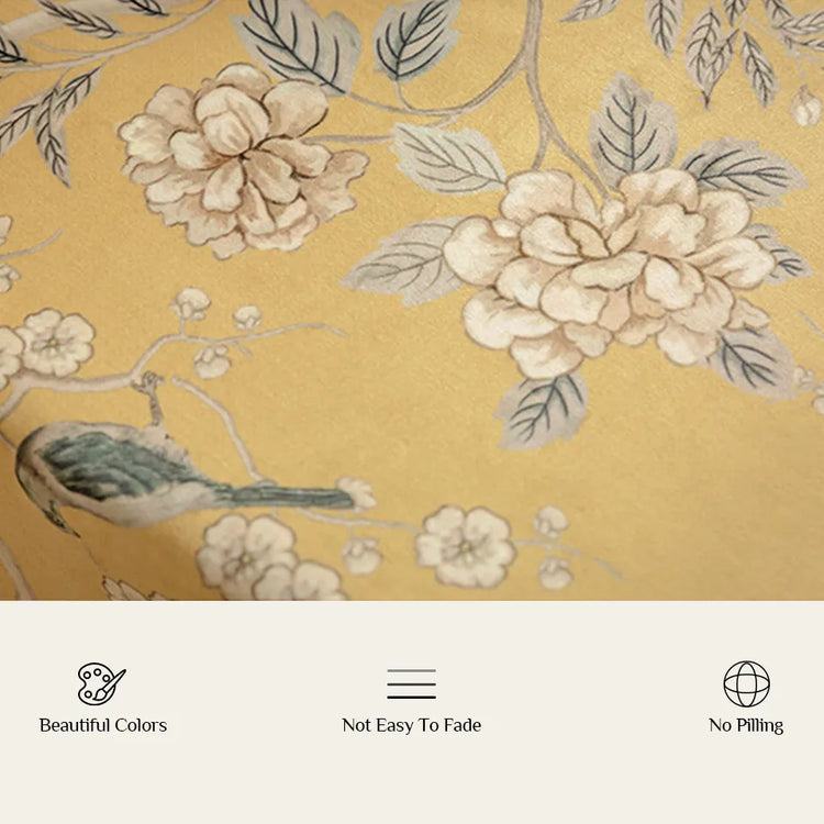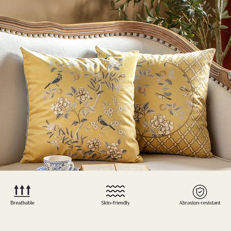 Chinoiserie Original Yellow Flowers and Birds Throw Pillow Autumn Abundance