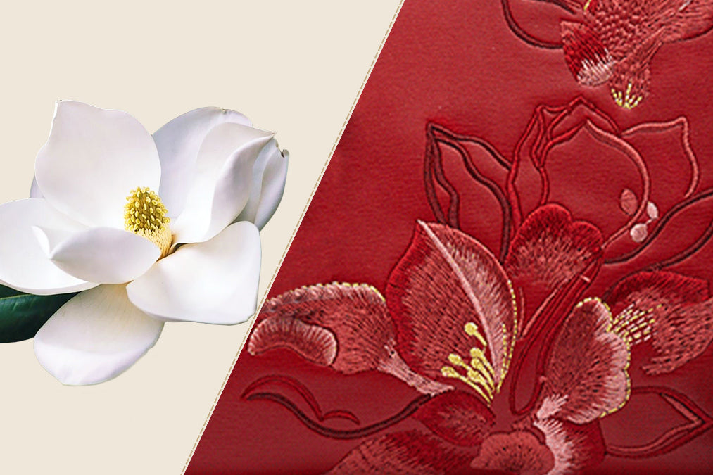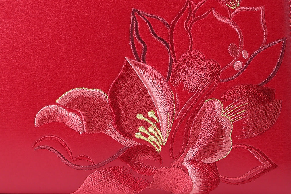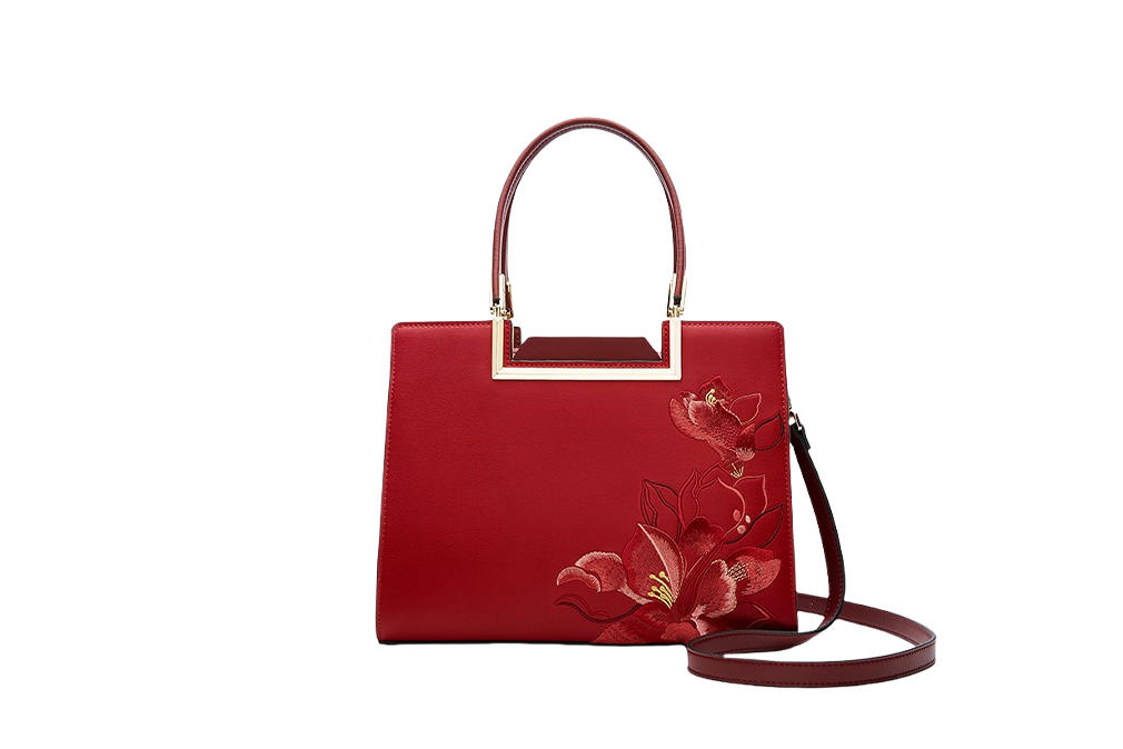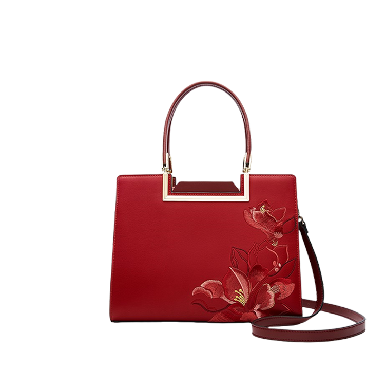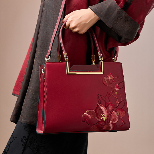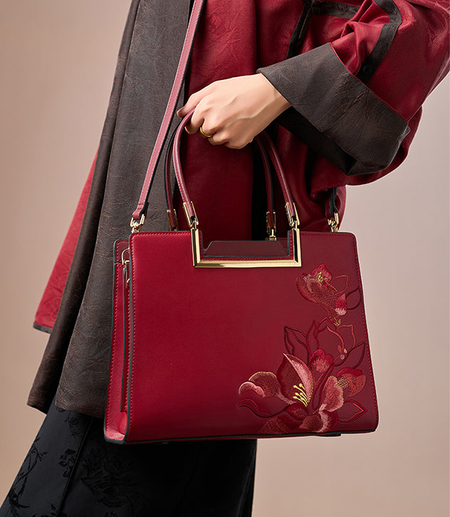 Sinocultural Embroidery Leather Red Tote Bag Magnolia Women's Handbag
