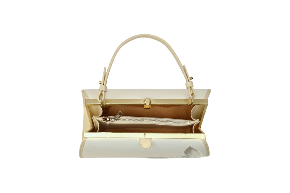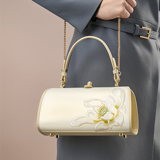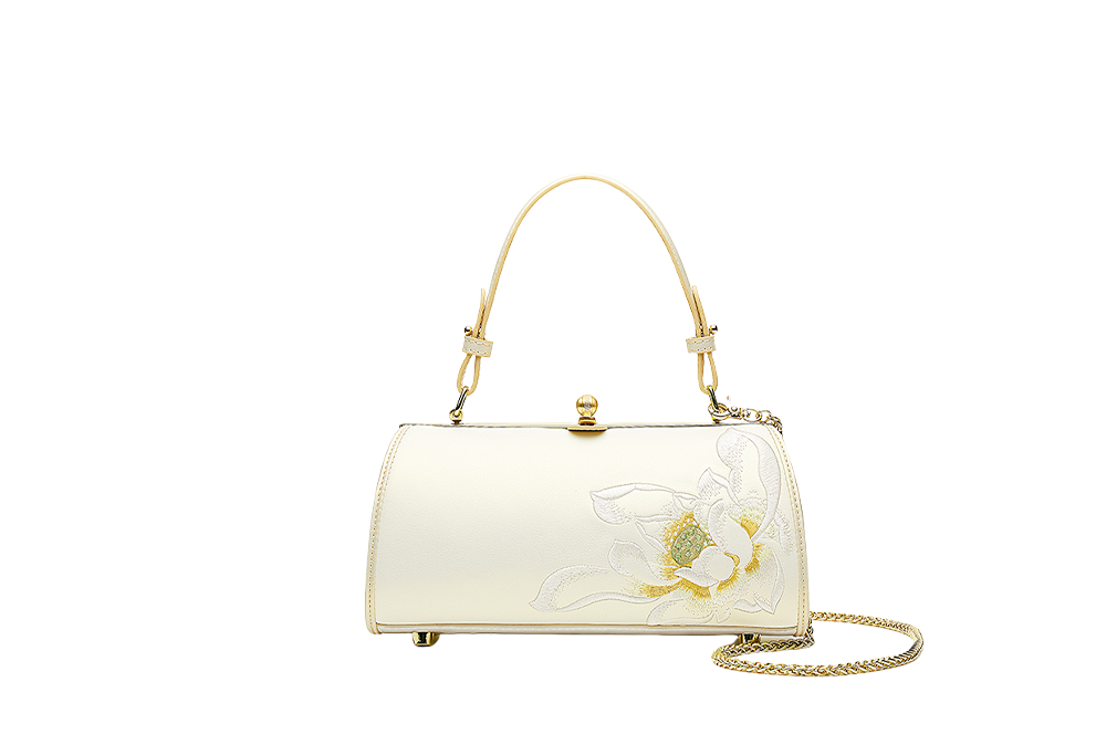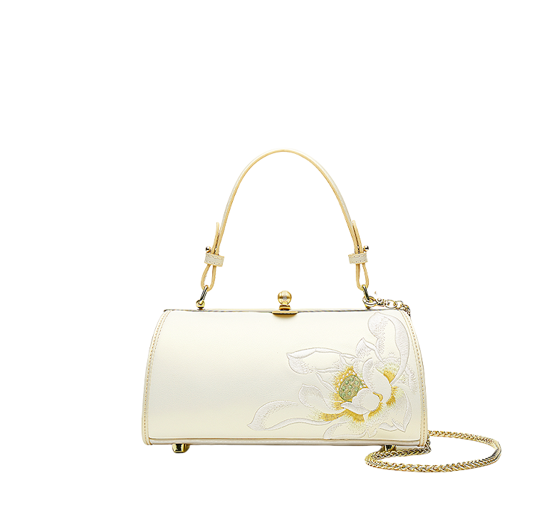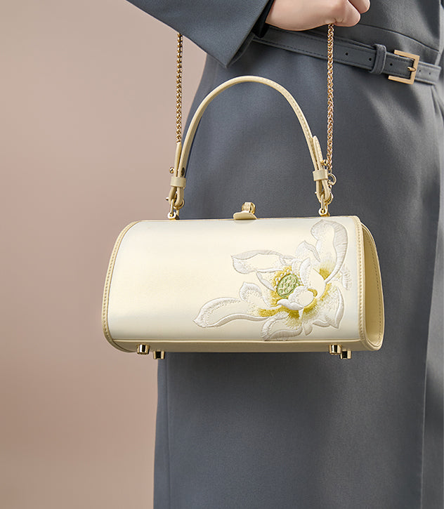 Embroidery Leather White Shoulder Bag Lotus Elegant Handbag