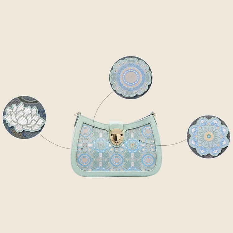 Song Brocade Leather Green Shoulder Bag Badayun Pattern