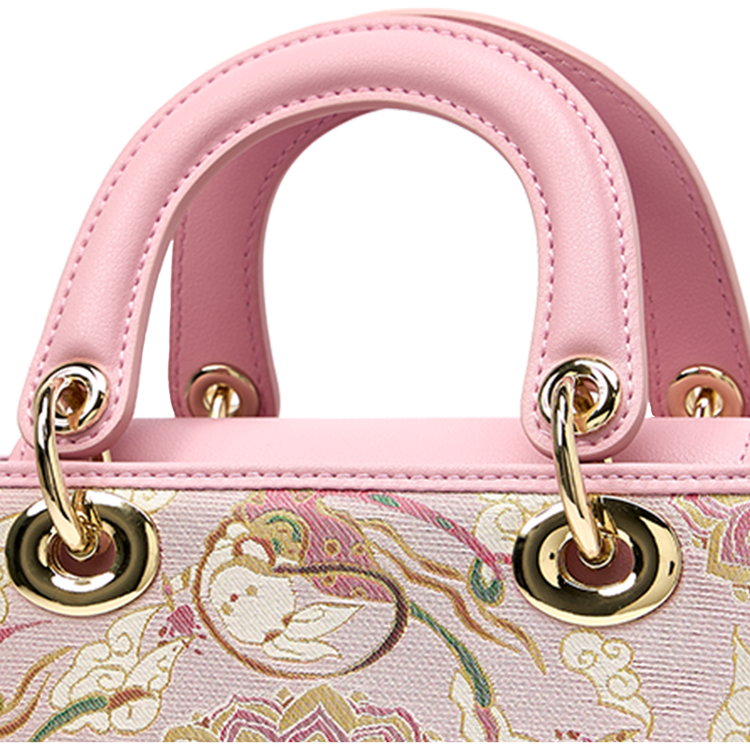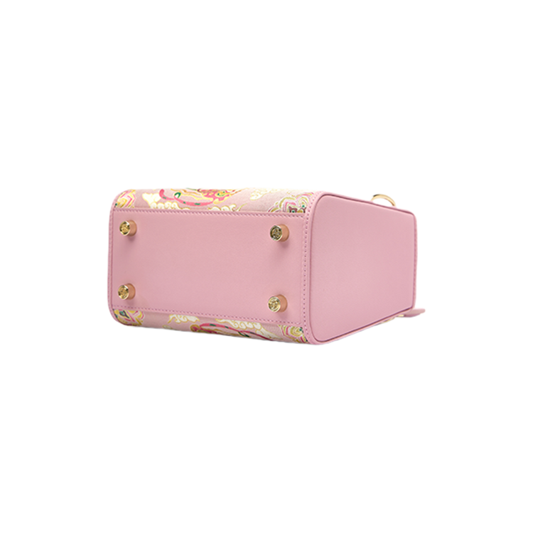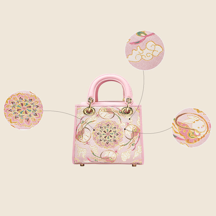Song Brocade Powder Pink Crossbody Handbag Lotus & Lucky Rabbit Pattern